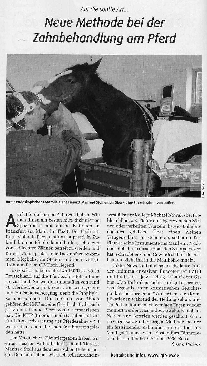 Neue Methode bei der Zahnbehandlung am Pferd |